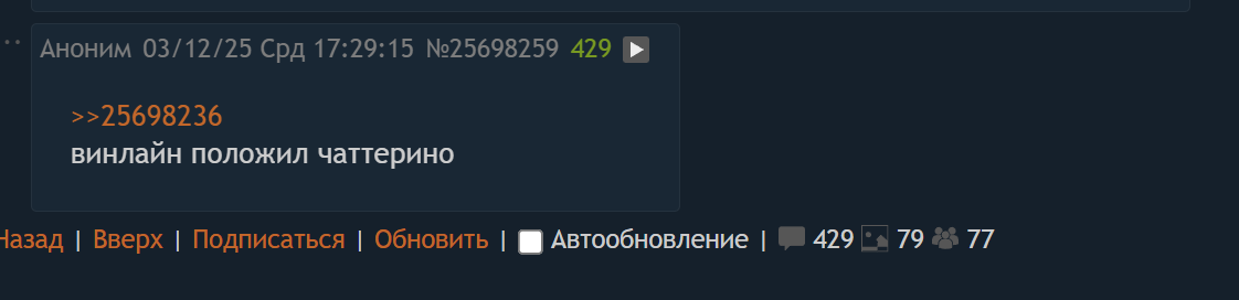 >>25697207 >будет дальше крутить вся не движка и машинки в Москве на СВО пойдут. По-хорошему ему еще твитч блокнуть за призывы крутить ему онлайн Давай делай говно, только у тебя ничего не выйдет, чмазунский неудачник лох попущенный.