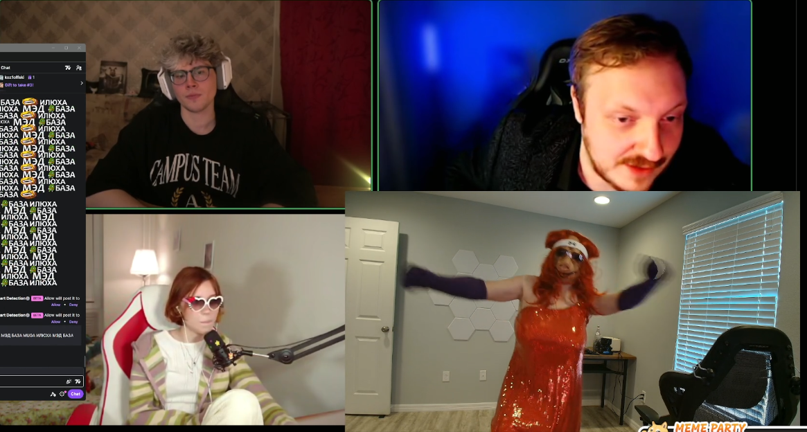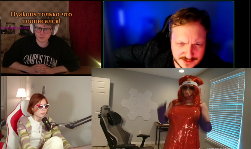 >>25699685 Соглы. Нонеймы на стриме, клоун на стримере, бесконечные мем алерты на весь экран, супер хуёвый звук. Стрим из конуры Андерсона, где он ебал Мэда. Это пиздец