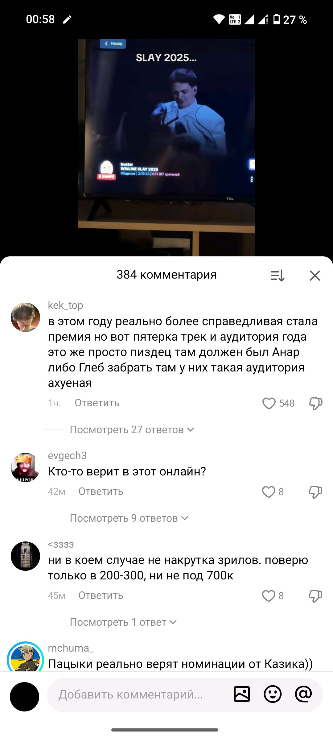 Здравствуйте уважаемая Екатерина Михайловна,скорее всего вы видели что 03.12.2025 проходила уже ежегодная стримерская премия "SLAY AWARDS" , которая транслировалась на Twitch канале самого популярного Русского стримера Вячеслава Buster'a Леонтьева, так вот,в одной номинации,а именно "Проект Года" выиграл Турнир по компьютерной игре Counter Strike , который организовывал Украинский стример Вадим Evelone Козаков, донативший множество раз на помощь недружественной стране (все видеоматериалы и подтверждения во вложениях ниже). Так вот,как это так получается,что на главной Стримерской Премии России выигрывает такой человек.Партнёрами данной премии выступает Букмекерская контора WINLINE,Ростелеком,Гигачад и прочее.Прошу проверить данные материалы и данную информацию и принять меры.Кроме самого Вячеслава Buster'a Леонтьева который выступает просто как лицо премии,главная фигура в организации является Павел Rikkidi Гусев, по совместительству Руководитель "Stream Alliance"