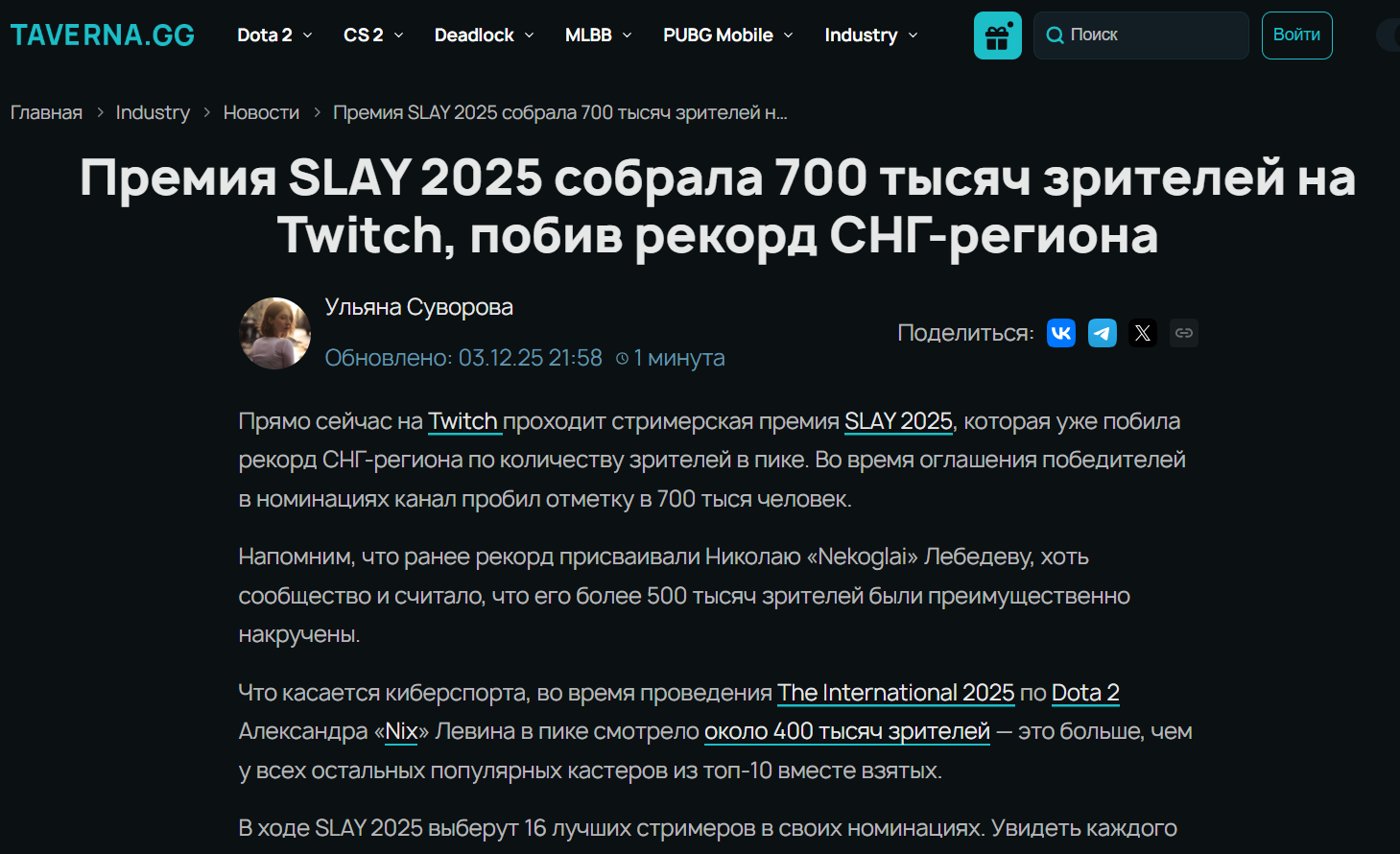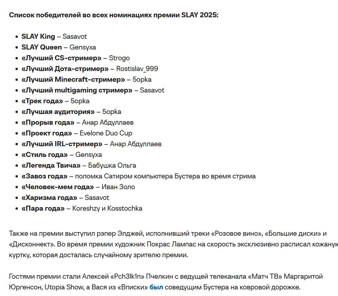 Если серьёзно кого бы вы номинировали на слейв? Я наверное больше всего в этом году смотрел мела. В игры играет, аудитория общая с илюхой у него большая, голосовухи у него можно послушать, плюс реальный мультигейминг