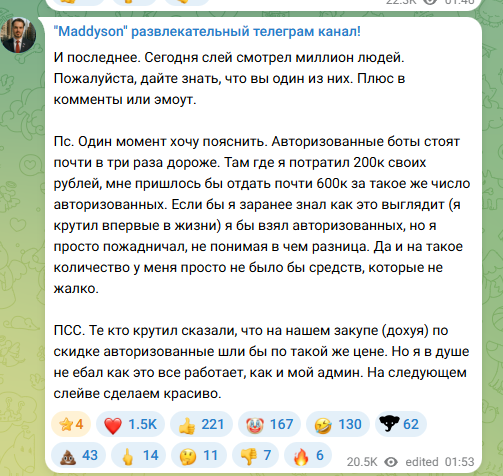 ВСЁ ЭТО ОКАЗАЛОСЬ ЕБАНЫМ ФЕЙКОМ. Мэддисон одним стримом показал, что вся эта «премия slay», где какой-то ноунейм шизик собрал 750к онлайна на русском твиче — это просто смех в лице. 750к? Серьёзно? Когда реальный король, которого 5 лет отменяли, гнобили и банили, возвращается и без накрутки, без ботов, без рекламы — просто так — вытягивает 250к за 10 минут. Он даже не старался. Он просто сел. А шавки годами пиздец как старались: коллабы, высеры, розыгрыши, кликбейт, тик-токи, клипы, реклама друг у друга — и максимум 60к. А тут чел, которого все «похоронили», одним щелчком показал, кто тут настоящий король стриминга. Мэддисон не вернулся. Он просто напомнил, кто здесь папа. Аве Мэд. Аве король. Шавки — в будку.