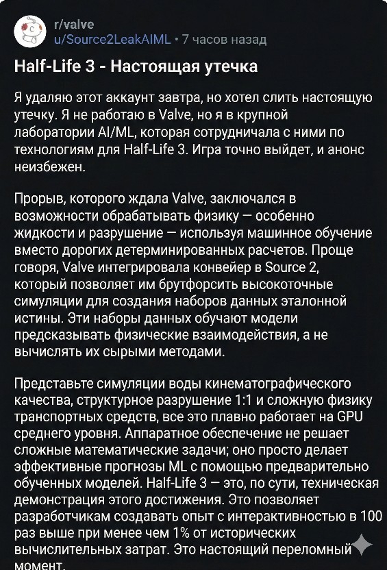 Габен совершил революцию. Весь физон считает ии внутри движка даже на средних картах без нагрузки на систему. Не просто так он Стим машин делает со средними характеристиками. Топовые компы просто не нужны для его игр.