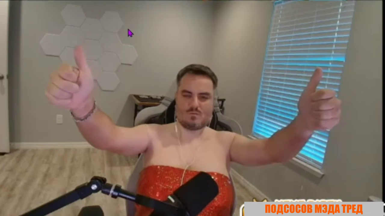 Представил, как Илюха Мэд во вчерашнем платье и сиськах стоит раком как Смазочник и пока его в жопу пялит Андерсон в костюме абу приговаривает какой он король твича