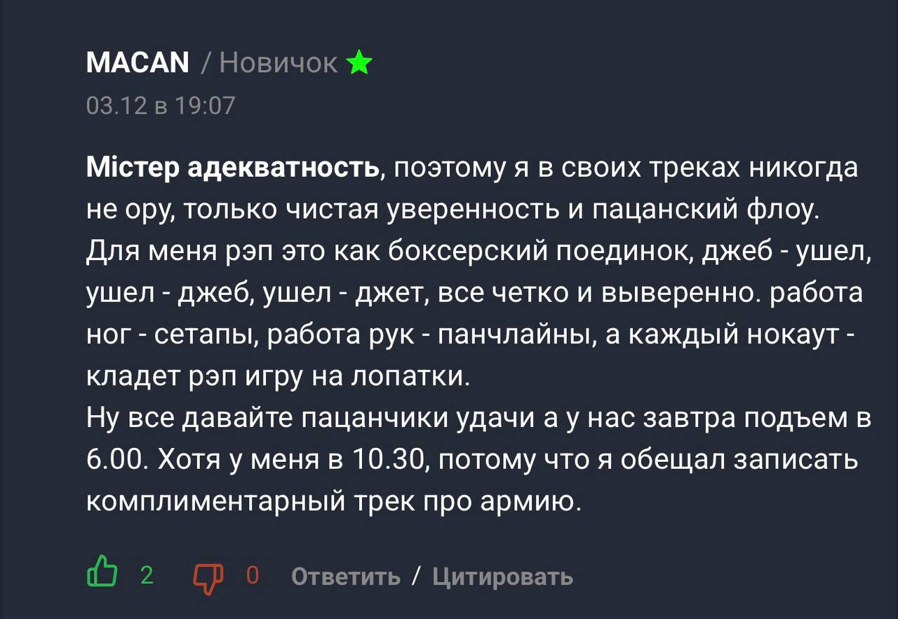 У Макана супер-пиздатая часть ,где уже на 1-м месяце сидит в телефоне,смотрит Жопича и треки записывает Я б на его месте договорился бы чтобы просто сидеть дома и офисную залупу делать по удаленке части