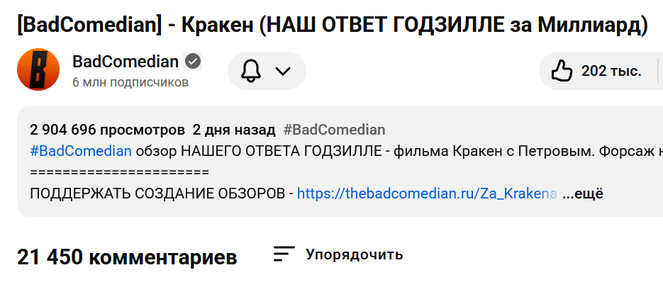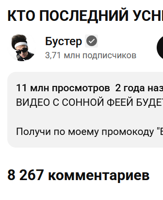 >>25713577 → дада верим количество комментариев на ролике с 11 лямов просмотров уступает видосу с 3 ляма просмотров у мертвого бэдконины, про которого все забыли