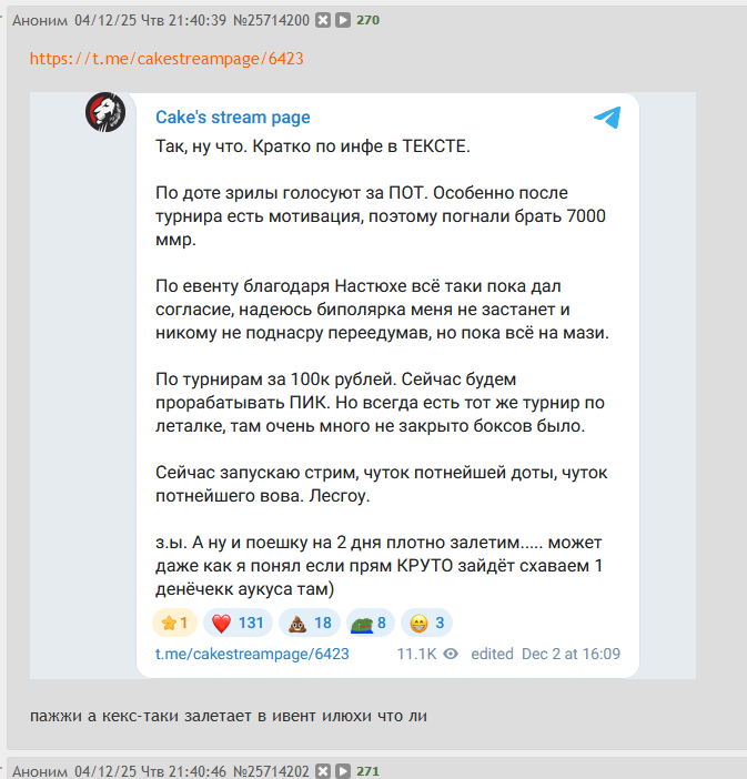 Любой адекват на месте Илюхи стал бы продвигать собственный сектор/коммьюнити в стриминге. Но это пропившееся хуйло само насрало на свою аудиторию, а последние 3 месяца внезапно начал ныть про накрутки и ботов.