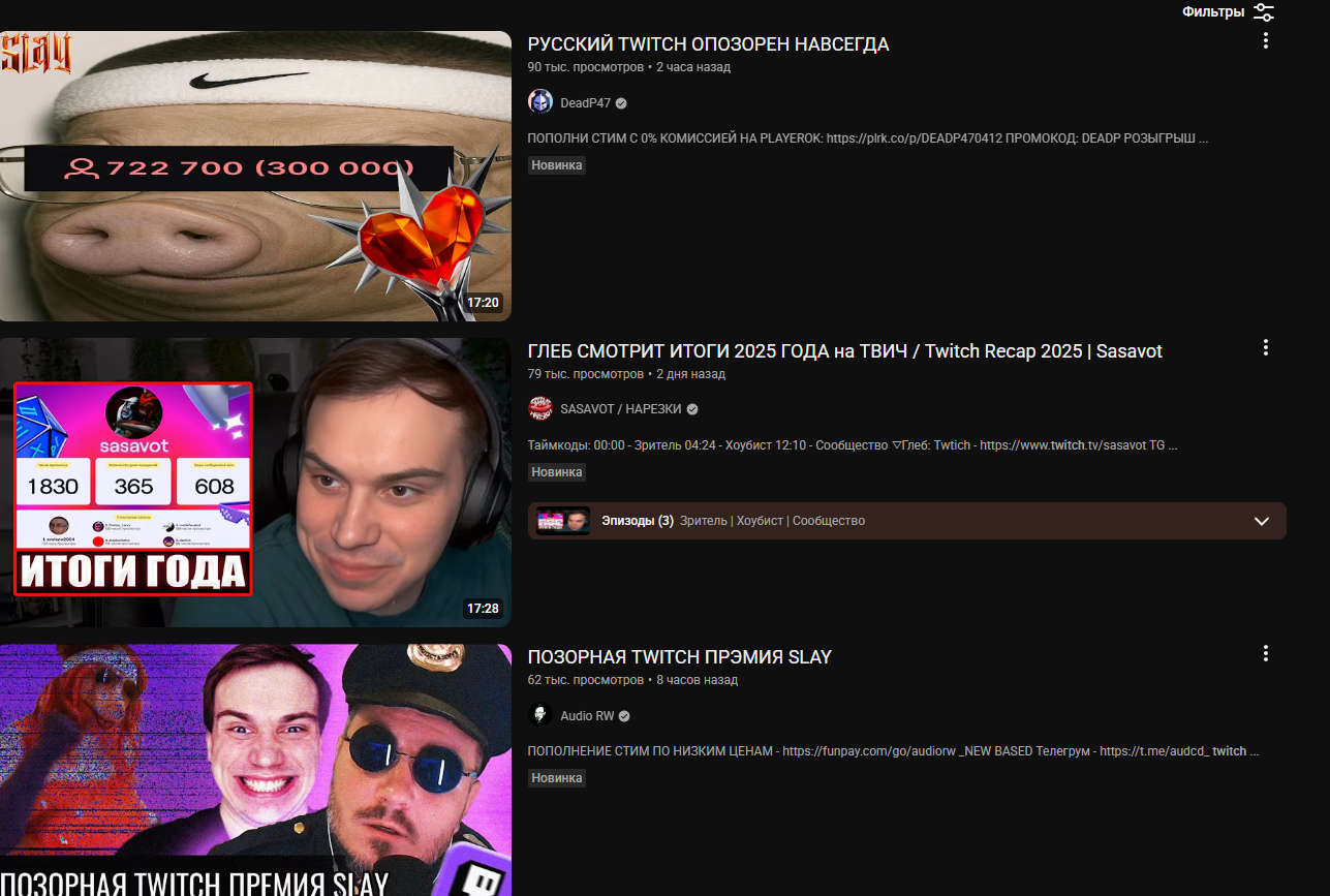 Самое смешное то, что твич и стримерство теперь тоже превращается в крупный бизнес со своими продюсерами и мафией в виде казинычей/буков и всяких сплетенных с ними агентств дианочки. В всж всё опять превращают в кал, те места где раньше мог любой стать популярным и начать зарабатывать, теперь без нужных знакомств и буков/казинычей ты будешь болаться на дне с крохами, наверх тебя не пустят. Все эти премии буквально от какого-нибудь "Гала концерт в кремле" с шаманом и басковым или голубого огонька не отличаются по степени кринжа, кроме того, что тут в открытую пропагандистов наркошопов зовут, буки и прочее и всем похуй, можно только лишний раз охуеть какая у этого преступно отмывочного жулья в верхах крыша и лобби, всж хули