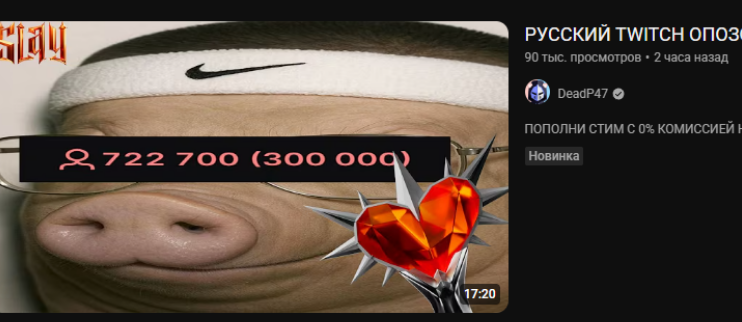 >>25713980 Топ и рекомендации забиты унылым накрученным говном. А хорошие честные стримеры не могут подняться, потомучто зрилы до них просто не доходят.