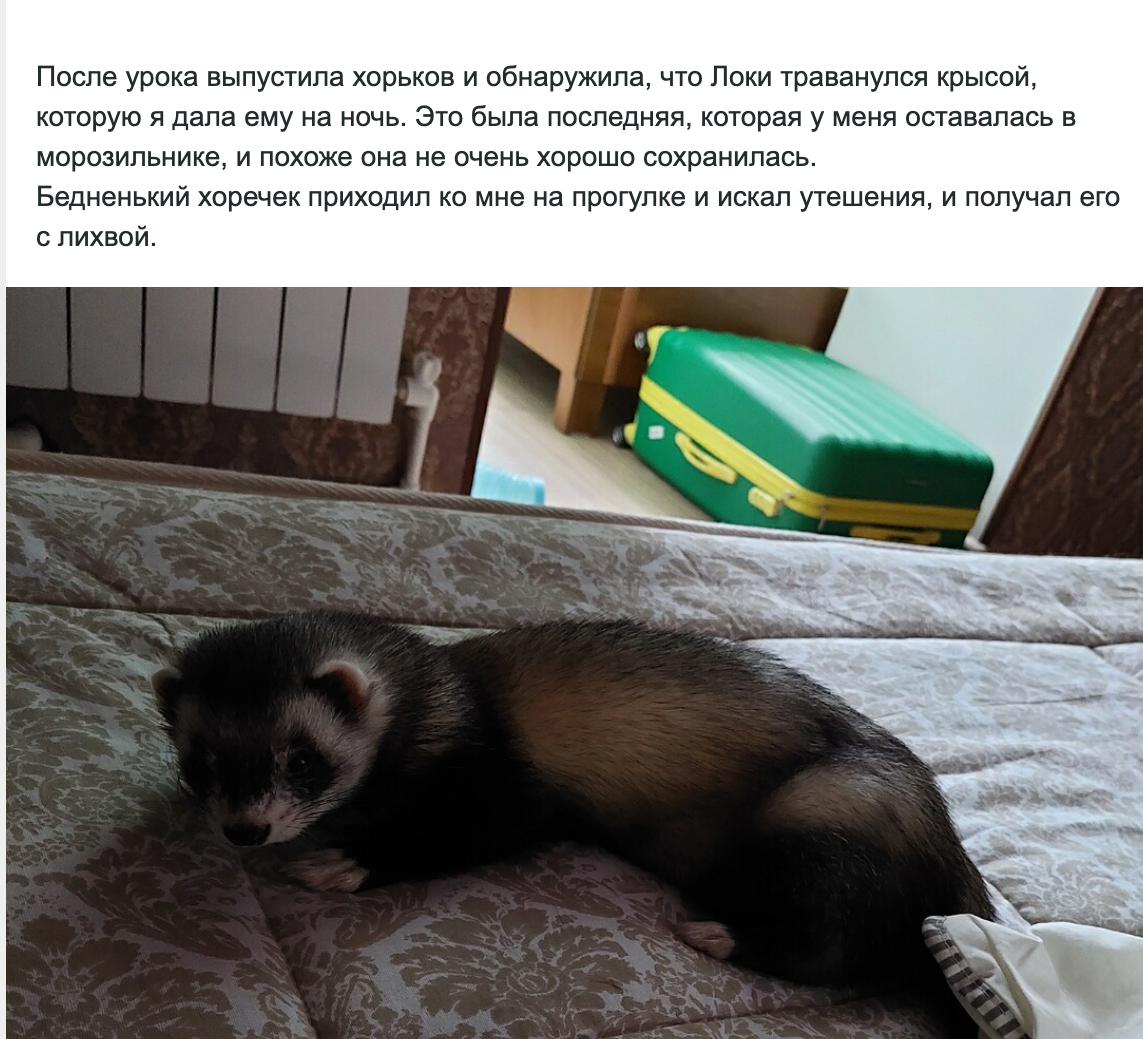 >>25716378 Яна же говорила, что не будет тратить деньги на ерунду пока не купит дом. Почему так? >>25717136 Яна же должна вдвойне лучше заботиться об оставшемся животном. Почему так?