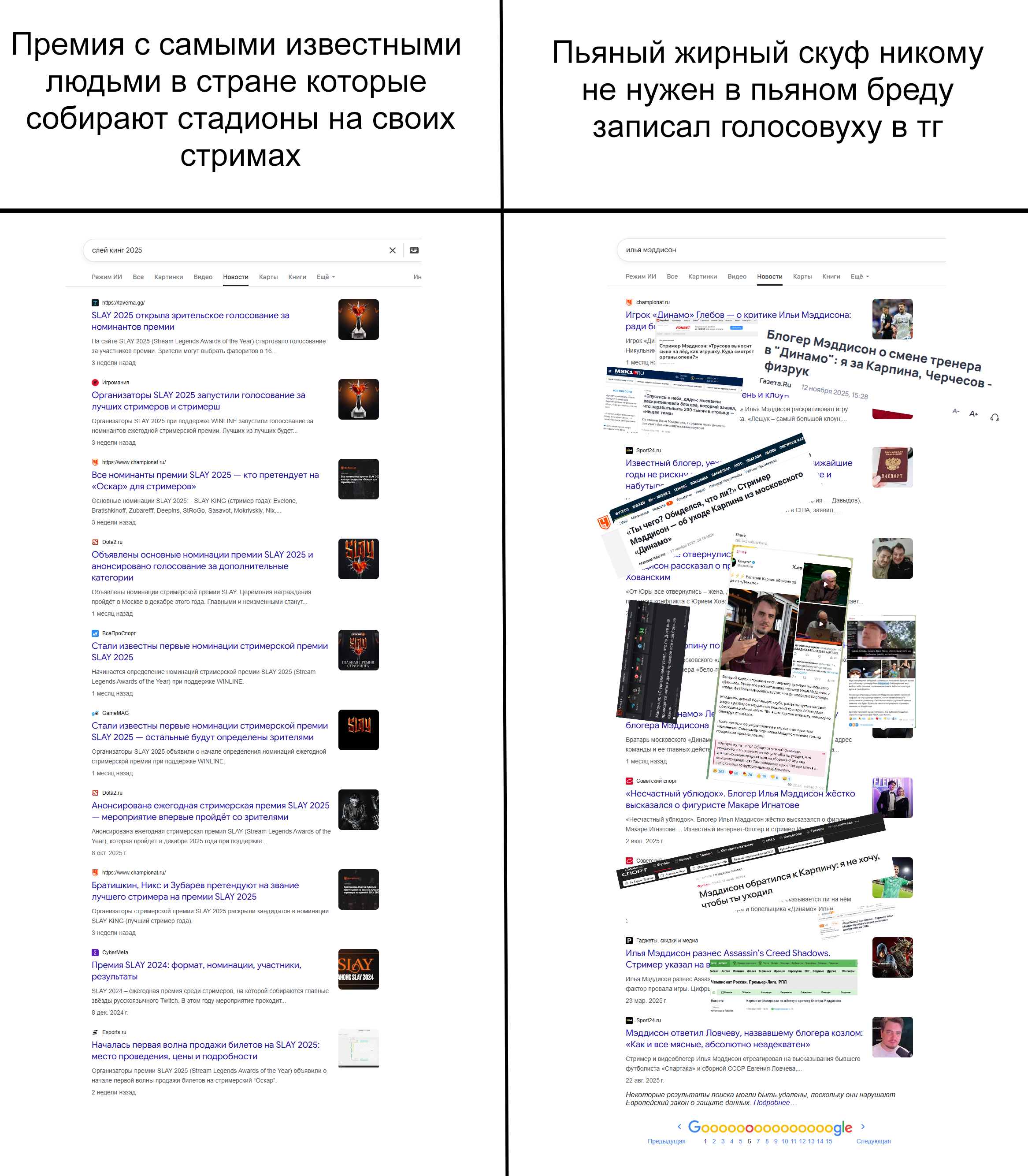 Я лично смотрел премию напрямую у Бустера, а не через жалких рестримеров, типа Мэддисона и т.д. Это очень жалко выглядит. Я не знаю, кто такой Мэддисон, знаю, что он душный и на всех пиздит, лично для меня это максимально скучный персонаж, как и все другие. Но, я не отрицаю его популярности в узких кругах и т.д. у него есть своя аудитория. Но, почему он, и подобные ему, так хейтят обычных, нормальных стримеров как Глеб Сасавот (Слей Кинг) и других?