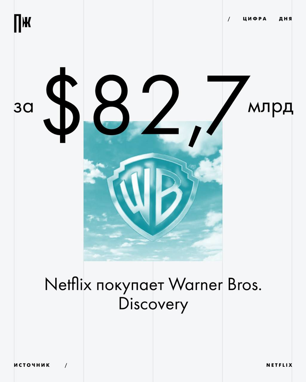 Netflix объявил о покупке Warner Bros. за 82.7 млрд долларов.