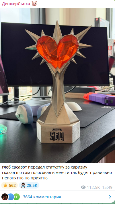 Немного про слей кинга: ПИК1 Одну из статуэток вручала Сасавоту его бывшая - Коря. На сцене также присутствовал Сатир как ведущий, к нему и ушла Коря от него. На прошлом Слее Сасавот Корю довел до слез на афтепати, они уже тогда были разбежавшиеся, но это потом обсасывали как он и она поцапались и как она плакала, это обсуждали конторские у себя на стримах как ниибаца событие - часть пиара оговоренная