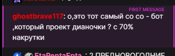 >>25731515 ты ща с другим срешься, ну т.е. ты не сидишь и не постишь ссылки на его стрим обязательно с 4 пикчами с фотошопом его ебала и не реплаишь себе под пост, да? ну не было такого никогда, притом что палился даж тем, что в самореплаях на свой пост с ссылкой на стрим паджита отправлял пикчу буквально с тем ж самым названием пикчи, которую юзал в таких же постах из 4 пикч, где скидываешь ссылку на стрим и пишешь болдом а также ты только доказал, что у паджита не 0 зрителей и остальное боты. да, молодец, что в тг напиздел скрины и выдавал их за посты анонов, которые сюда их отправляли якобы. никто и не спорил, что у него 0 зрил, 300 или 500, до того как начал работать с дианой и крутить себе 2к на кукинге, было все таки живые кати ебаные чернильницы рил существуют. и какой-то жирный модер тоже