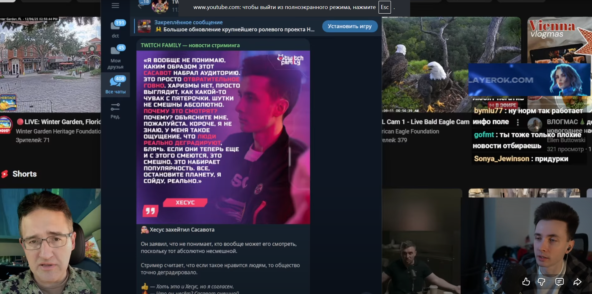 Про стримеров, блядь, на Твиче, про который, нахуй, до сих пор никто не знает в России, блядь. Твич, это чё такое-то? Где доту показывают, блядь? Вы чё, совсем там с дуба рухнули? Братишкин, алё, блядь. Типа, глаза протри и, блядь, бананы из ушей достань уже, давай, соберись, блядь. Я уже даже у вас прошу хоть немного, ну, типа, мозгами-то пошевелить, ну вы чё уже, вообще что ли? Охуели, вам-то не крутят столько. Вам-то, может, и дают Х2 там, я не знаю, там, ну просто накидывают, чтобы какие-то статки были. Ну, блядь, ну то, что они делают, это ж вообще охуеть.