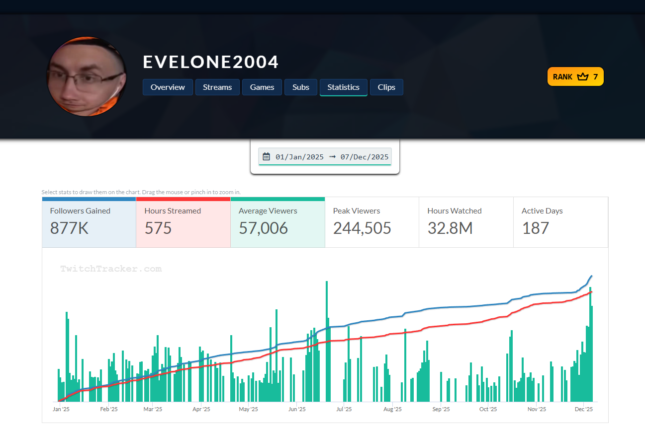 У меня впервые за карьеру 100 к онлайна среднего за неделю (с) Эвил Ну про что я и говорил,как же он дрочит на свою стату,у него Твич трекер открыт 24 на 7 и он смотрит и смотрит,смотрит на каком месте он по фолловерам в мире и тд