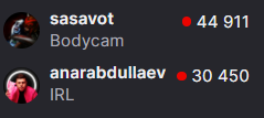 >>25737119 да ну реально я щас в ахуе я думал сасаврот и анал за год стали мастодонтами твича а оказывается нет они не смогли перепрыгнуть челов у которых аудитория за своего кумира глотки готова рвать