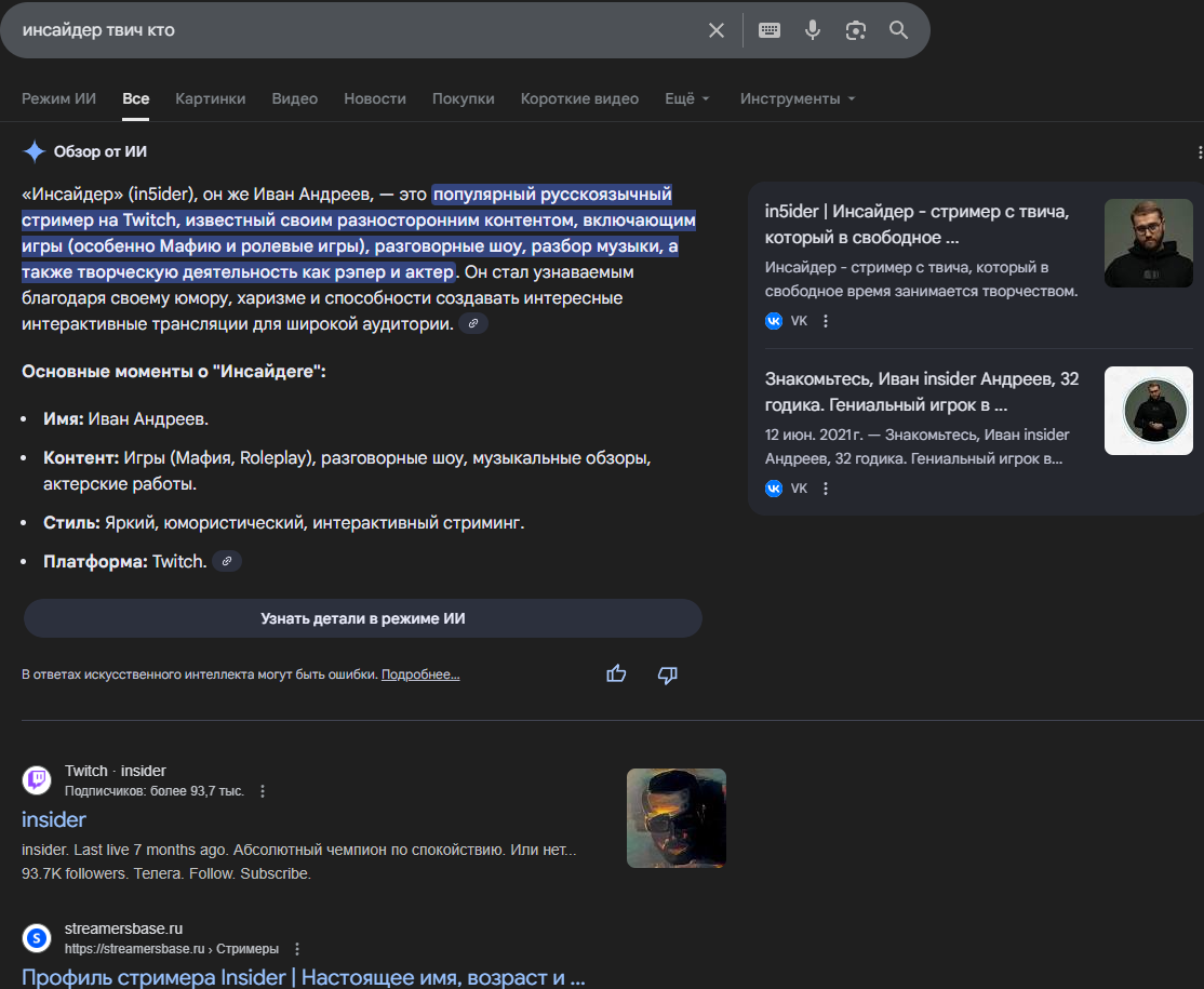 Как давно не смотрите Кекса? Я со времён армы 3 батлрояль, ну окей старта пубг и амонгаса с новыми ролями лет 7 назад. После буквально только релиз Эллен ринга у него смотрел, так как он на мой вкус и цвет хороший соулс лайк стример, и то чтобы скрасить время в больничке, когда чуть не помер. Остальное, что помню это тупое говно вроде доты, варкрафта и всяких рекламных. Всегда охуевал откуда у него по 5к онлайн, да он смышленый чел, но на говне собрать людей невозможно. Чмодье в моем случае прав когда спрашивает вы давно смотрели Кекса? Очень давно