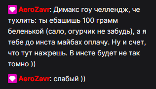 После официального объявления, что не имеет отношений только по причине возможной потери донатеров, симпы должны молится, чтобы Заврик не ливнул, иначе начнет прямо на стримах занюхивать парней и рассказывать что неплохо бы такому отсосать, прямо как в старые ламповые времена)))