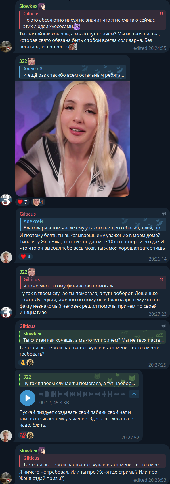 >>25748038 Это вообще хуйня для неё, сама потом выкладывала этот же фейк и обсуждала. Она даже не вспоминала об этом. Её бесит что он ей мозги выеб жоско когда ливанул. Довёл до слёз, запорол стрим и прочее. Короче в душу плюнул. Потом много раз бомбила с этого.