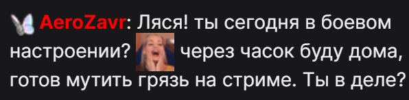 >>25748490 >напутала что-то и не правильно выразилась ну я так и понял, что утром ходила куда-то, а потом спать завалилась, хз, может мы про разные моменты говорим, но такого чтоб спала весь день и проснулась за час до стрима, я не помню