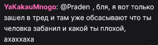 Праден мог бы с таким же успехом и к Лясе яйца попробовать подкатить. Да, все бабы его прокатывают с сексом, но Ляся если бы и отказала, то индус хотя бы попытался заработать себе топ тян, а не амебу с ебалом как у тухлой рыбы.