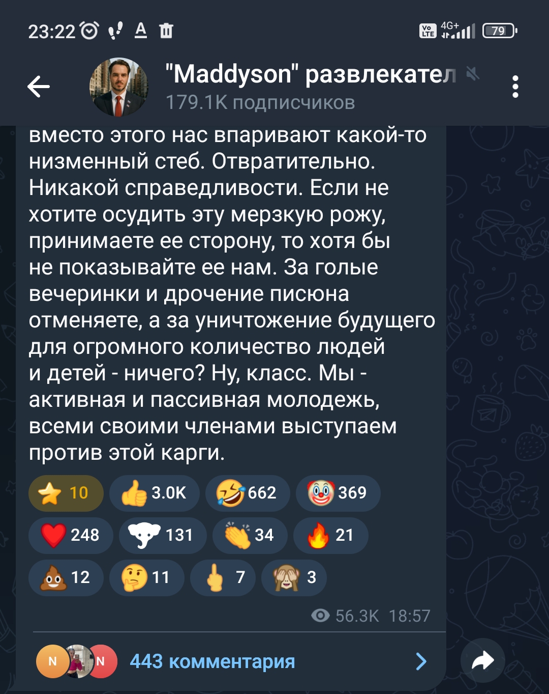 Здесь буки устроили псиоп что некий обрыган с 9 классами образования имеет такую же аудиторию. Прыгает по комнате, орет нечленораздельную хуйню. Это в целом все.