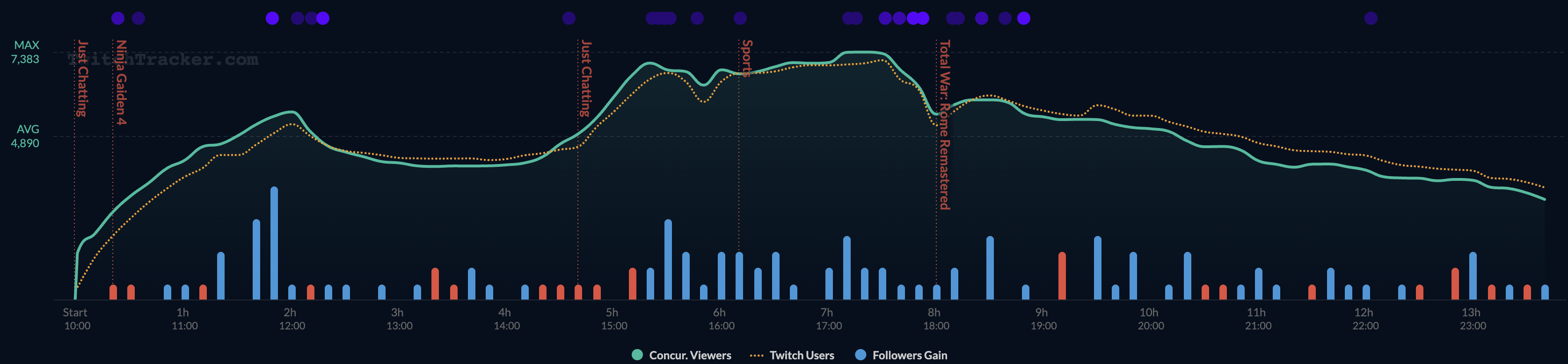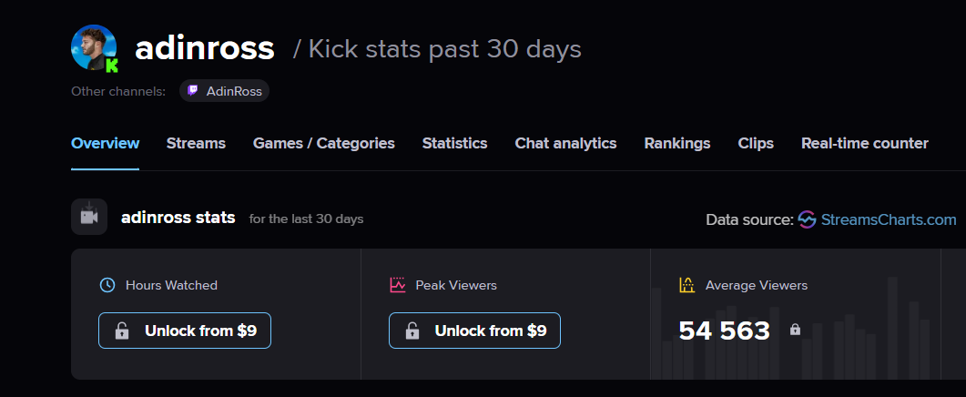 Стата стримера у которого на канале был Дональд Трамп и xQc. (ласт скрин - твич)