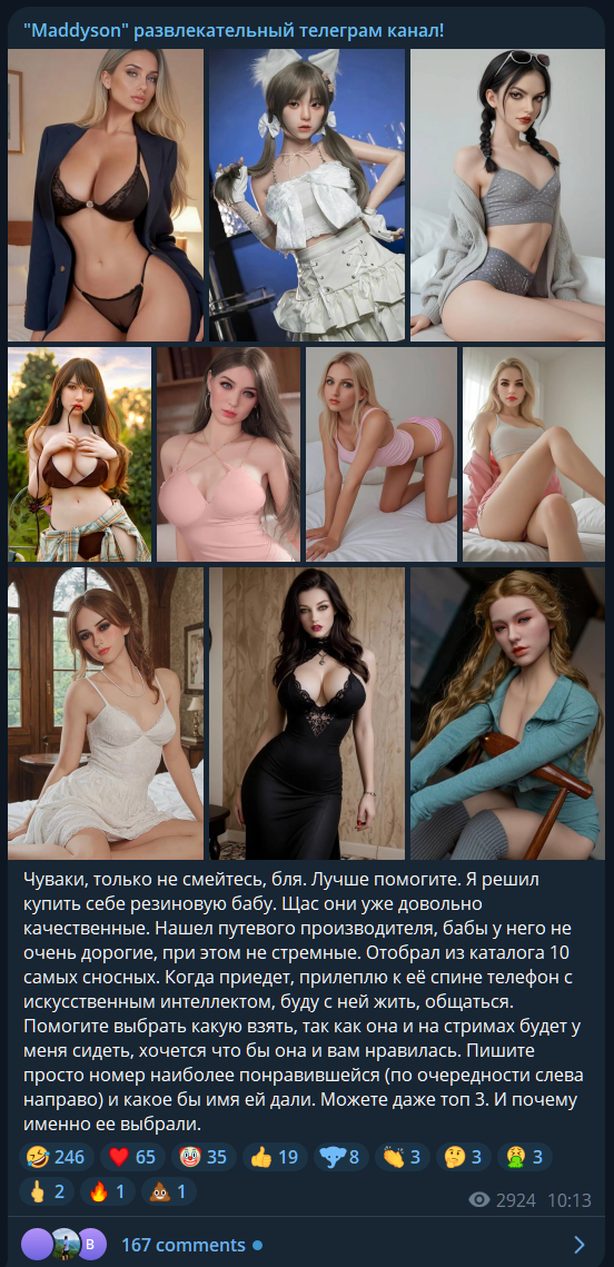 >>25749563 Она ботов завезла сюда, чтобы они притворялись фанатами Мэда. Она и с Мэдом, скорее всего договорилась и ему занесла. Ну не могут же люди быть такими тупыми.