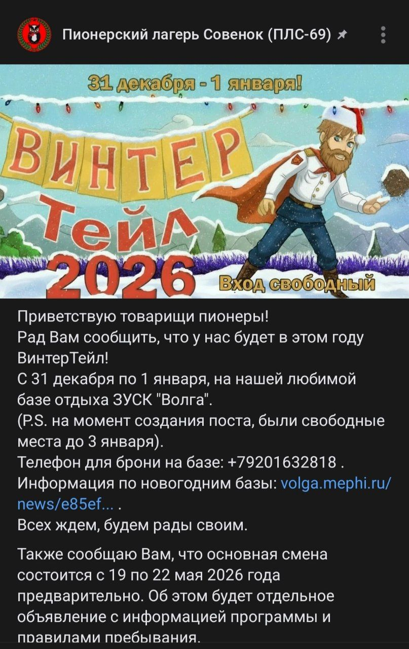 >>25764976 А можно приехать в Волгу на НГ, если денег нет можно не в сам лагерь а рядом в лесу засычевать. Добрый дядя Лексус знает покажет пару нычек, где можно переночевать даже зимой, и несколько тайников с хабаром даже припрятал заранее. Анон, ты только приезжай хоть иногда...