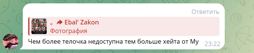 Дарья В. сколько раз Вас спрашивали, на какие деньги Вы бомбите города РФ? Даша, ты понямаешь, что всё в позитиве и негативе тобой заработанное на вражеской для нас (меня) территории идёт на убийство меня и твоего родного города. Даша, ты плохой человек, отпусти меня от себя, я не твой. Прощай. (надеюсь вообще)