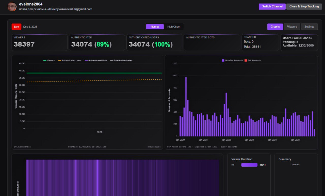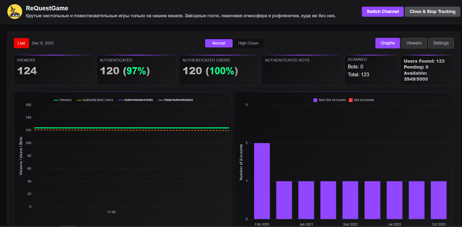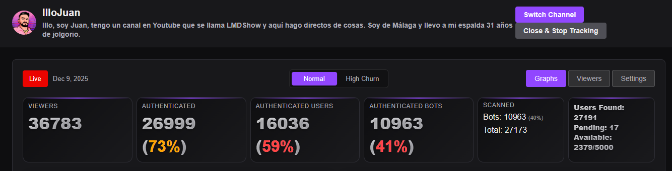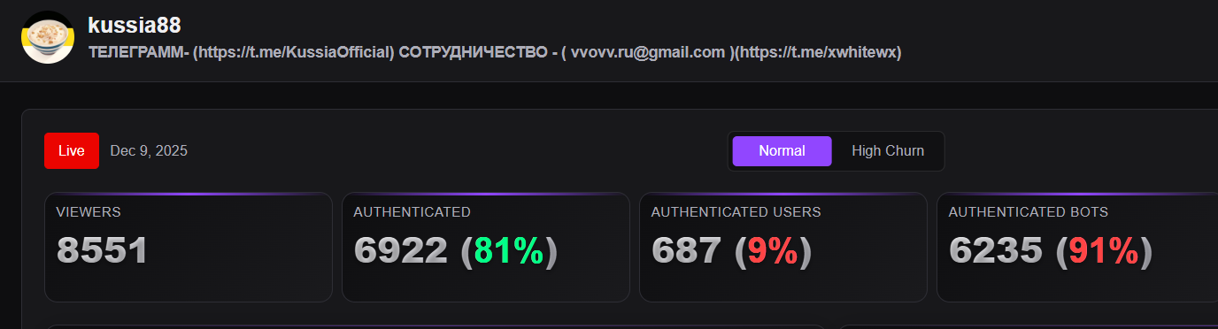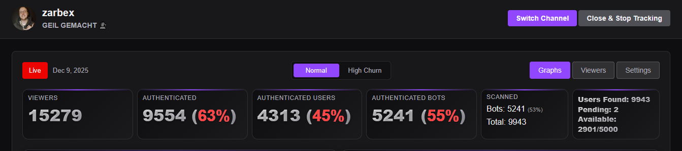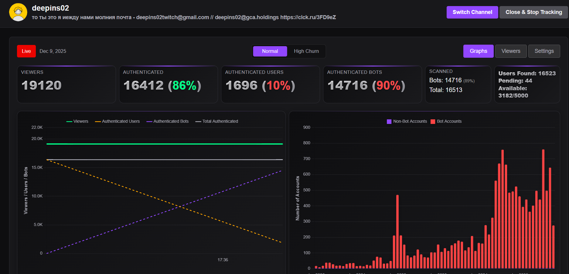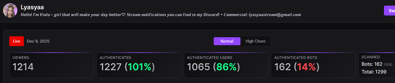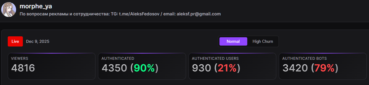 Как может быть 100% реальных пользователей? На каких дегенератов это расчитано? Там как минимум для обеспечения работы чата, функционала и аналитики используются боты на любом нормальном стриме.