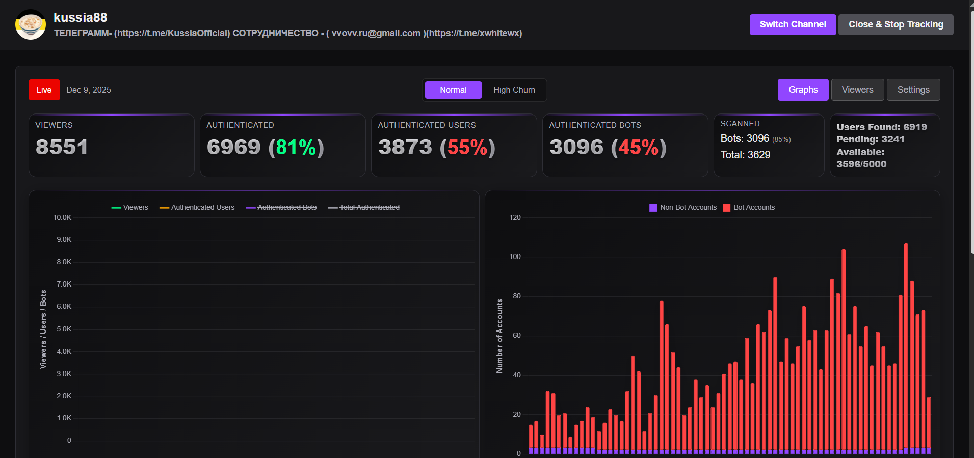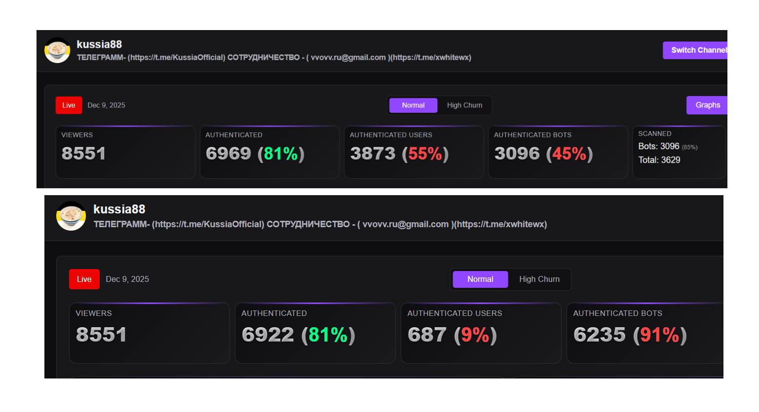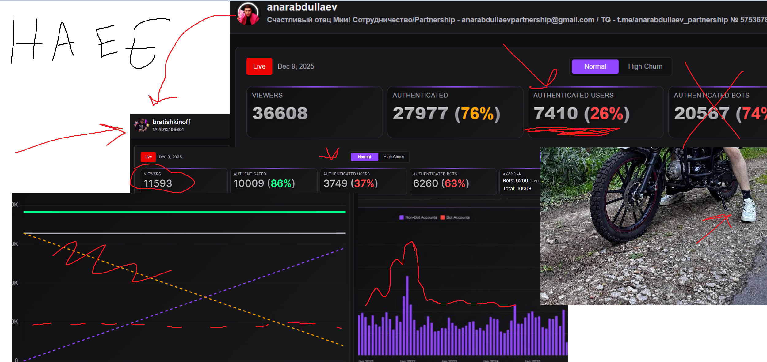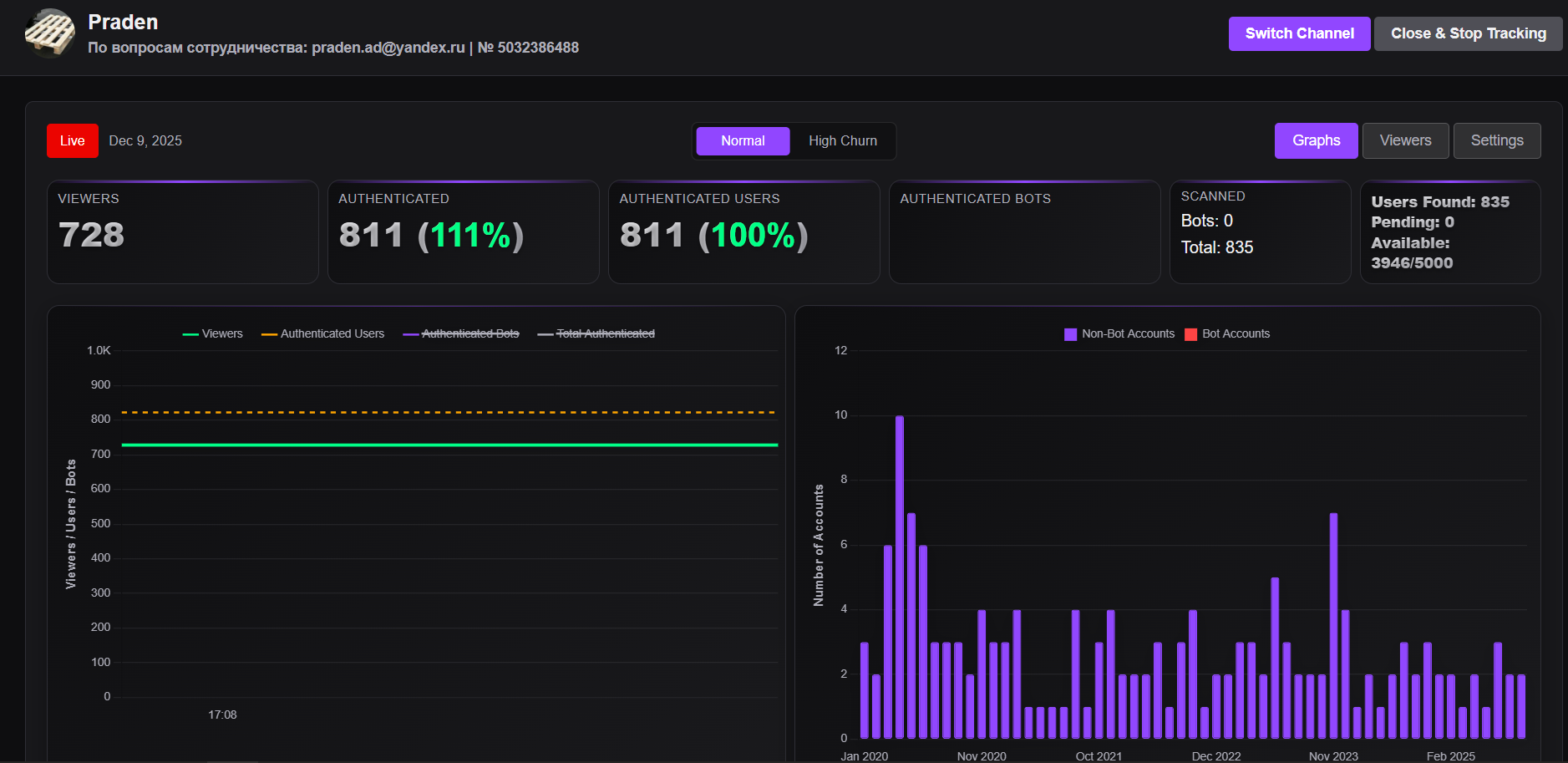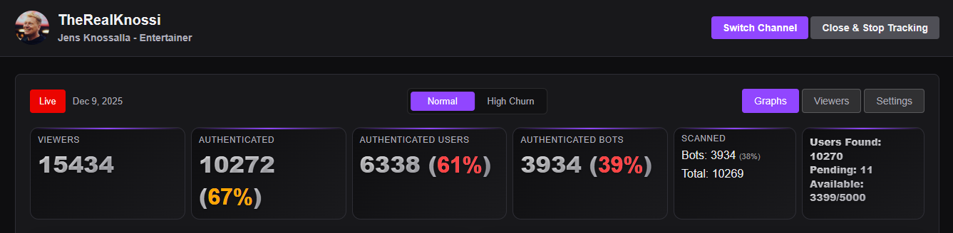 Как может быть 100% реальных пользователей? На каких дегенератов это расчитано? Там как минимум для обеспечения работы чата, функционала и аналитики используются боты на любом нормальном стриме.