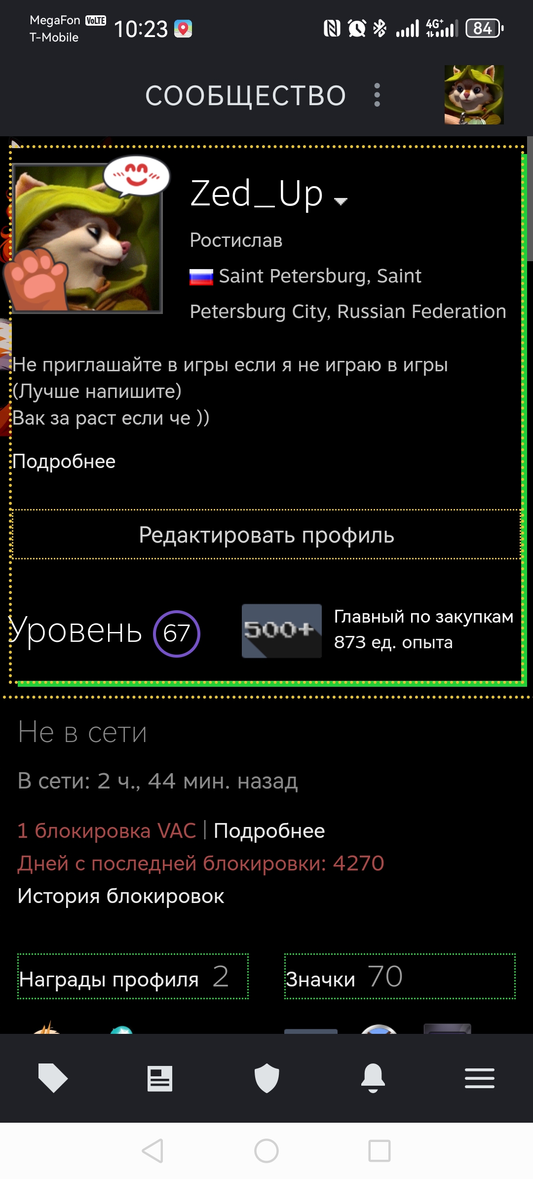 проходит время (почти 10 лет) и что видим? у чела чистый профиль, никакой инфы о вак бане (видимо все-таки его сняли, признали ошибку. просто так вак бан никогда не снимается).