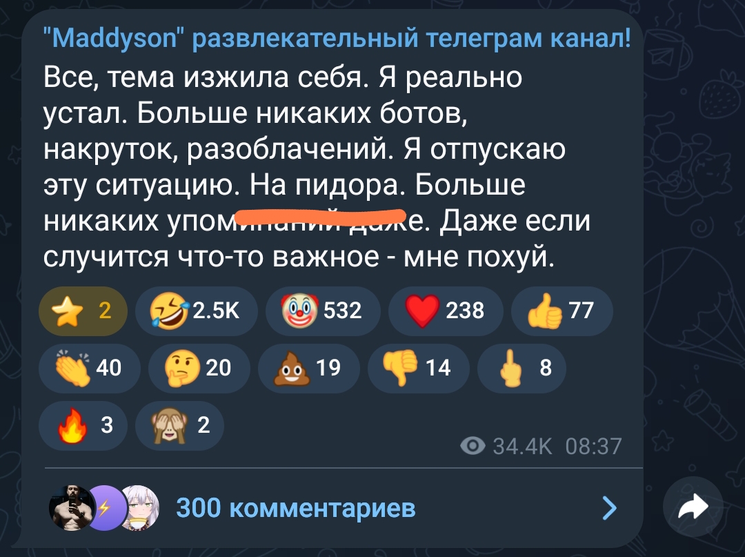 Это как с мэдом ты можешь доказывать что он хуесос но сука это чуть ли не единственный медиагигант который не является обосаным защеканцем