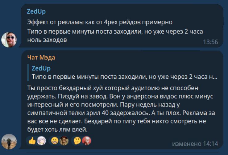 тупое животное бахал что я якобы посты нейронкой генерю, а теперь пытается задеть меня заключением от предвзятой нейронки, которой были слиты посты моих мимиков и мои троллинг-посты