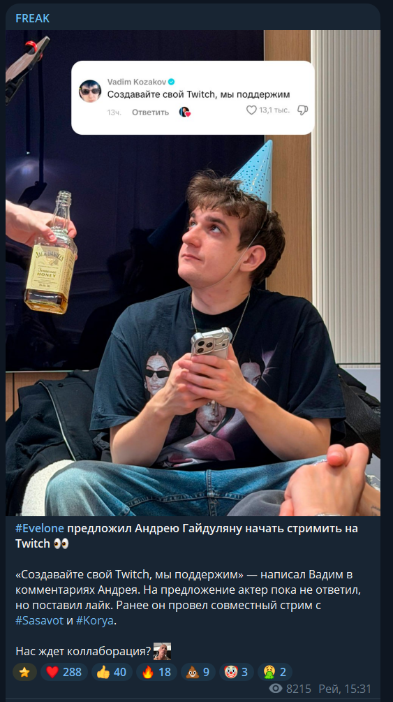 Это про гайдуляна типа толстого мудака с тнт говорил Илья в тг? Так он сам епт смотрел Саша+Богдан. С ним самый популярный выпуск у плюшек. Естественно это далеко не последний актеришка, а почти звезда уровня анара или сасавота.