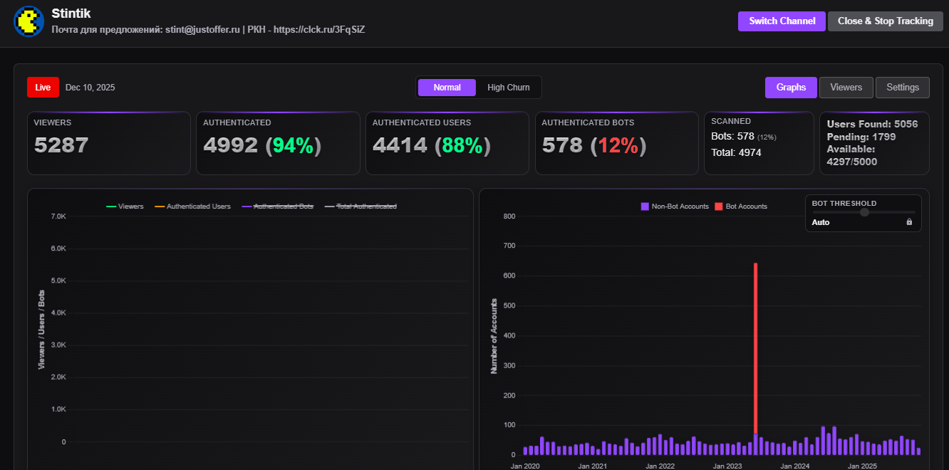 >>25762753 крч если у стримера меньше 20% накрутки значит точно ботов ебашит не он(исключение если у стримера например 800 а ботов 200, значит для рекламодателя ему нужно 1к), для меня так