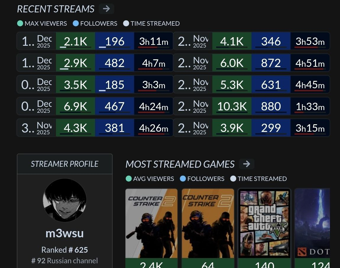 >>25769808 я если че в твичтрекере чекнул, единственный стрим был на 5к у него и то он тогда запустил хайпик, когда братишкина забанили, остальное 500-1к среднего