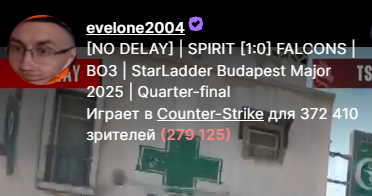 Щас в категории КС на твиче всего 600к онлайна... КС умирает, были времена когда на мажоре в 2021 когда нави играли было 2 миллиона зрителей в категории