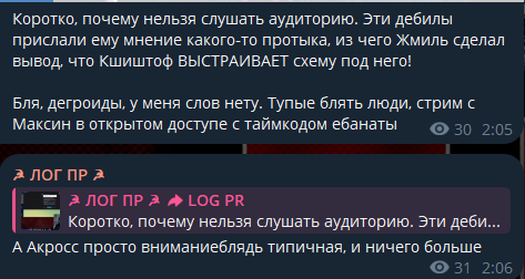 Я просто в ахуе. Криштоф даже не поискал пост в тг Ларкина, посту без 3 дней два года, а он за свежачек выдает. Тут даже нужды нет десятки стримов смотреть, просто найти пост по ключевым словам