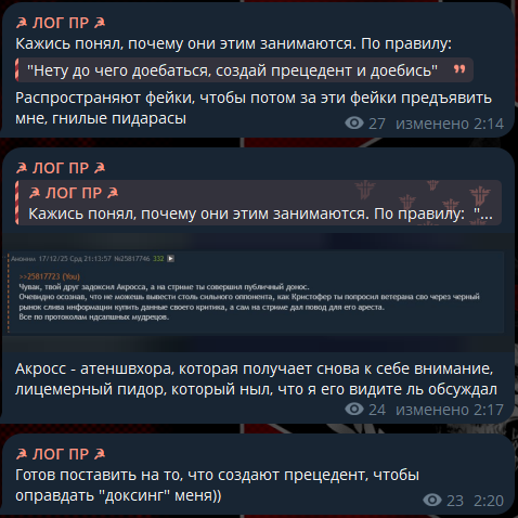 > пока докс Акросса Да ля, забейте, Двачеры. Если это всё ограничивается лишь той попыткой запугнуть меня, то в целом похуй. Чисто момент с которого можно только покекать - не более