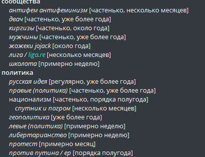 Поэтому пусть ебутся с этим, как пожелают, я со своей стороны сообщил нужную инфу, мои полномочия всё, я получил минус подписки, хейтвотч, засёр и угрозы за это. Поэтому я сьябываю смотреть чё там у левых, и более чем уверен, что вернись я в правацкое болото через год, всё будет тоже самое.