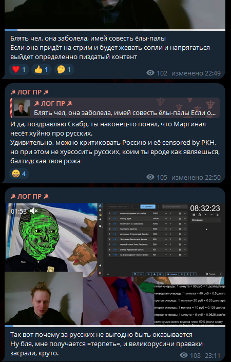 Сабж умудрился за рекордно короткое время прокатиться по всему подвалу рунета, одновременно обсуждая и красных, и правых, и в процессе случайно добился самовыпила собственных каналов на Ютубчике. Причина классическая — фута-контент, за что его в итоге аккуратно вынесли с ру-ютуба, но это не точно. Дальше всё по учебнику, как полагается каждой микро-селебе из околополитического болота, завёл личный шизо-чатик в телеге. Там он круглосуточно заливает поток сознания — от нытья про тян (с акцентом на вечную драму с бывшей Данилинга) до тяжёлой геополитической шизы про будущее России. В довесок приплетает андеграундные кружки уровня Светова, Юнемана и прочих Жожеков, чтобы выглядело солидно. Преподносит себя так, будто у него аудитория на пару сотен тысяч и его мнение весит хотя бы что-то (спойлер: нет). Но, внезапно, вызывает неподдельный интерес публики, будто у него есть какой-то тёмный лор и политическая тусовка Ютуба реально в курсе, кто он такой, просто молчит.