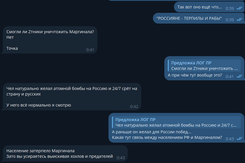 Блин, чел конечно странный. Он реально рассматривает "идеи" Маргинала, не понимая, что единственное, что делает Маргинал, просто пиздит 24/7 всякую хуйню и чушь, и чем абсурдее - тем лучше. А лучше тем, что все эту хуйню будут обсуждать.