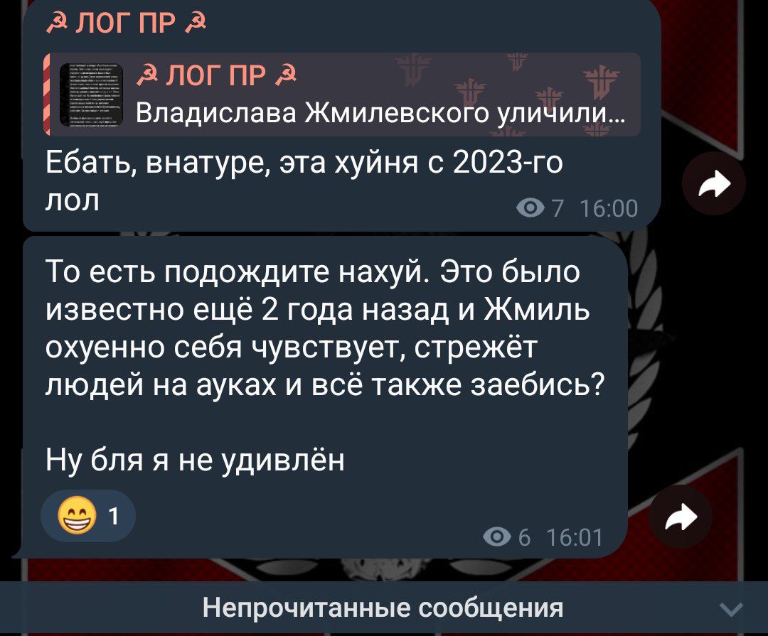 Ты не поверишь, но про пятерых стримеров, отменяющих Жмиля я только сейчас услышал. Видимо это был настолько важный инфоповод/событие, что никто не помнит и не вспоминает это, кроме самих фанатов Жмиля. Или он был настолько ничтожен, этот инфоповод, что прошёл мимо остальных, в том числе и меня. Конечно бы я докопался и припомнил бы, но я не подымал эту тему так как вообще понятия не имел о таком случае. Так вот почему он проводит аналогию, что его якобы уже отменяли за недостаточную ультра-Z позицию.