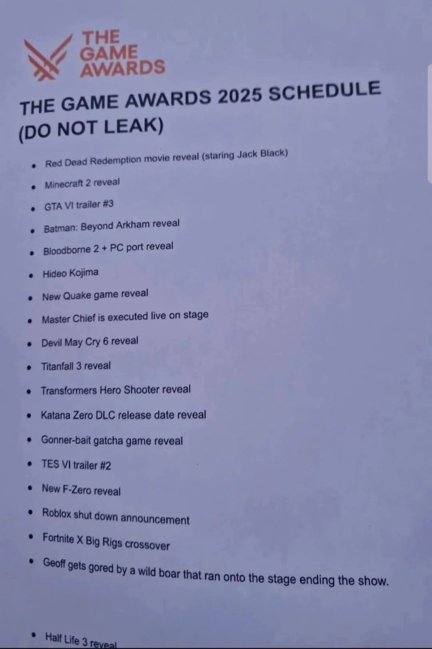 😱 В третьих Тодди «бигбой» Купискайримович ещё вчера приехал на ивент и помимо награждения очередного номинанта ВОЗМОЖНО покажет что-то про TES VI, а то заебал уже, 8 лет с анонса прошло. Но я согласен даже на ремастер\ремейк Fallout 1\2. Ну или просто объявит что сегодня начинается второй сезон сериала.