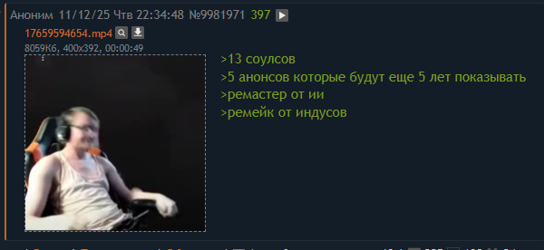 >>25772822 Честно говоря, я смотрю Илюху Мэда. И вместе с ним, я потерял интерес к играм, играть не могу вообще почти. За год, в лучшем случае 3 игры и те небольшие. Так они ещё и растягиваются на целый этот самый год. Ну, ладно, ухожу из треда, раз мне тут не рады, всем чао, пока. Добра и позитива!