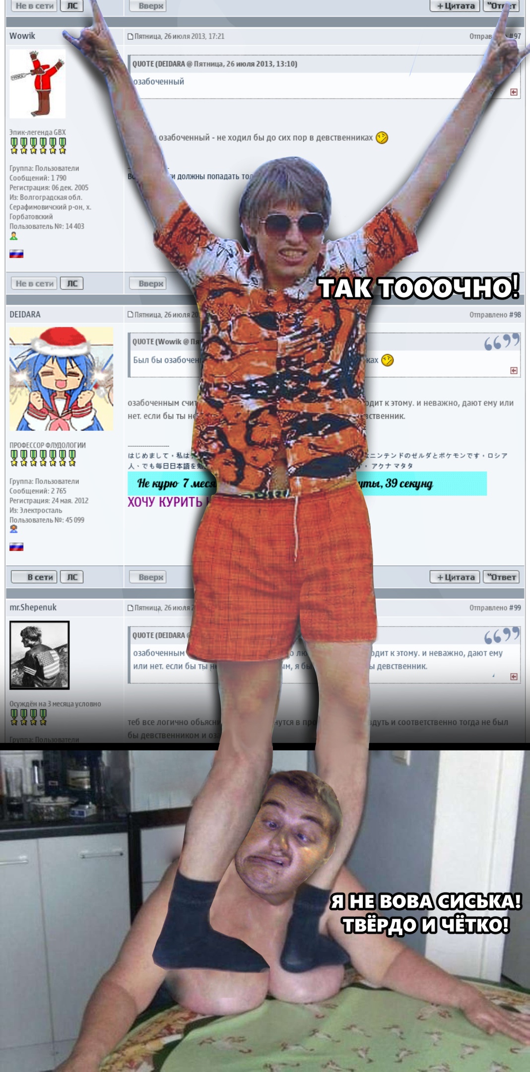 Или ты думаешь что вовик охуенно удачливый? Лол. По факту вовик обычный /bитард, просто он не может принять свою судьбу потому что его с детства заставляли думать что он лучше чем он есть. В этом и есть трагедия вовика.