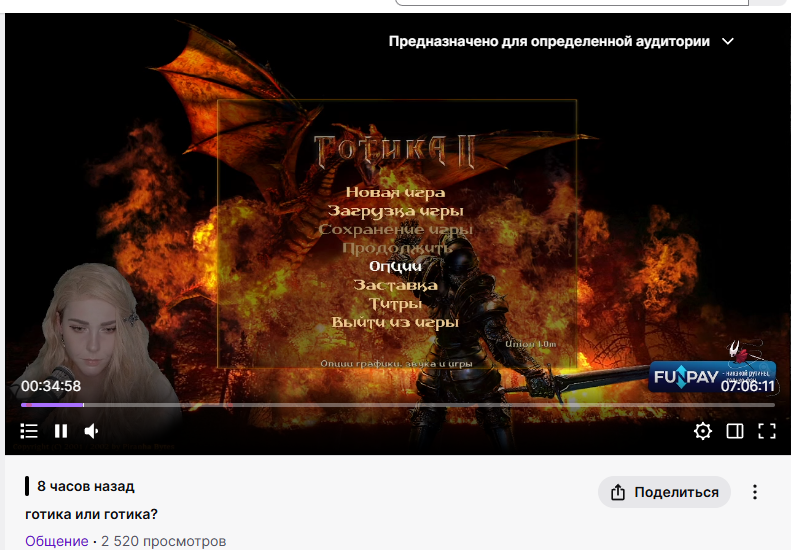Жопичу в свое время тоже задонатили на Готику 2, но он скачал правильную готику Ночь Ворона. А у нее ума не хватило разобратся. Без Ночи Ворона зрители это говно смотреть не будут.