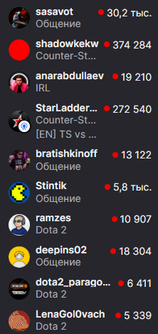 >>25787091 полтора часа казино = два стрима по 13 часов где топ контик - тга, деревенские завозы, алкострим
